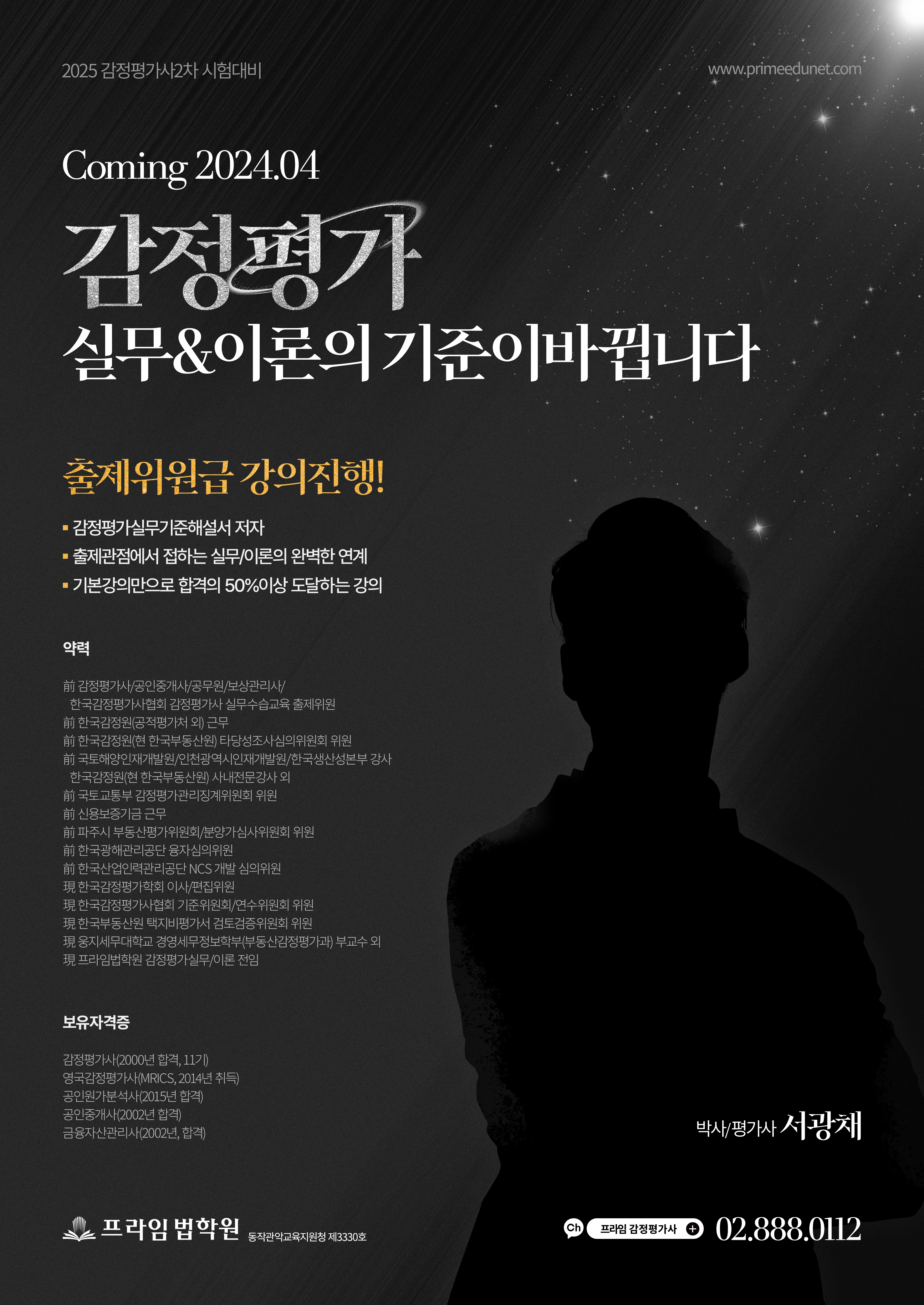다음글 2025 감정평가사2차 기본강의 일정 및 종합반 안내(4월 시작)