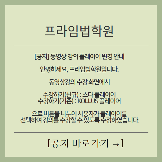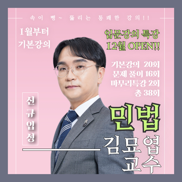 학부 시절에 행정법 수업을 들었었기 때문에, 예전 사법시험 때부터 유명하였던 김기홍 교수님의 교재만을 사용하여 시험을 준비하였습니다. 그러다가 이번에 기초를 다시 잡고자 김기홍 교수님 수업을 들었는데, 역시 유명하신 데에는 이유가 있는 것 같습니다. 교재부터 강의까지 오랜 강의경력 때문에 정말 필요한 부문만 잘 다듬어져 들어있는 것 같습니다. 앞으로도 잘 부탁드립니다~