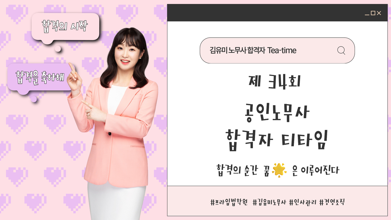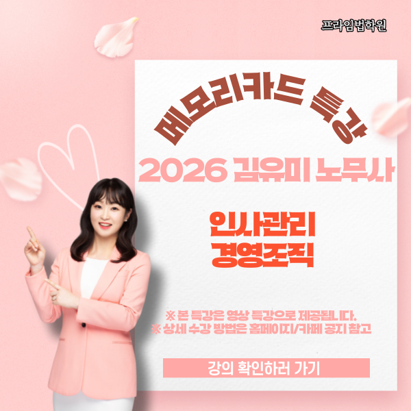공인노무사 시험을 준비하게 되면서 인사노무관리 강사님으로 유미쌤을 가장 많이 추천 받았고, 합격수기를 읽어봐도 유미쌤이 많이 언급되었습니다. 그래서 맛보기 영상 등을 보고 유미쌤 강의를 들었는데 깔끔한 개념정리와 체계화된 목차로 강의에 대한 이해도를 높이는 강의가 되었습니다. 특히 경영 과목 자체가 광범위해서 어디까지 공부해야하는지 막막할 때가 있는데 그런 부분들도 해소해주시는 점이 좋았습니다.