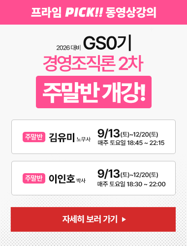 경영 조직론을 전체적으로 개관 해주시면 유기적으로 볼 수 있게 도와주시고 경험을 예로 들어 주시기 때문에 이해하기가 쉬운것 같습니다. 이번 차는 사정상 끝까지 못 하였는데 내년 시험에서도 꼭 다시 듣고 싶은 강의에요. 강의 알차고 유익합니다. 감사합니다.