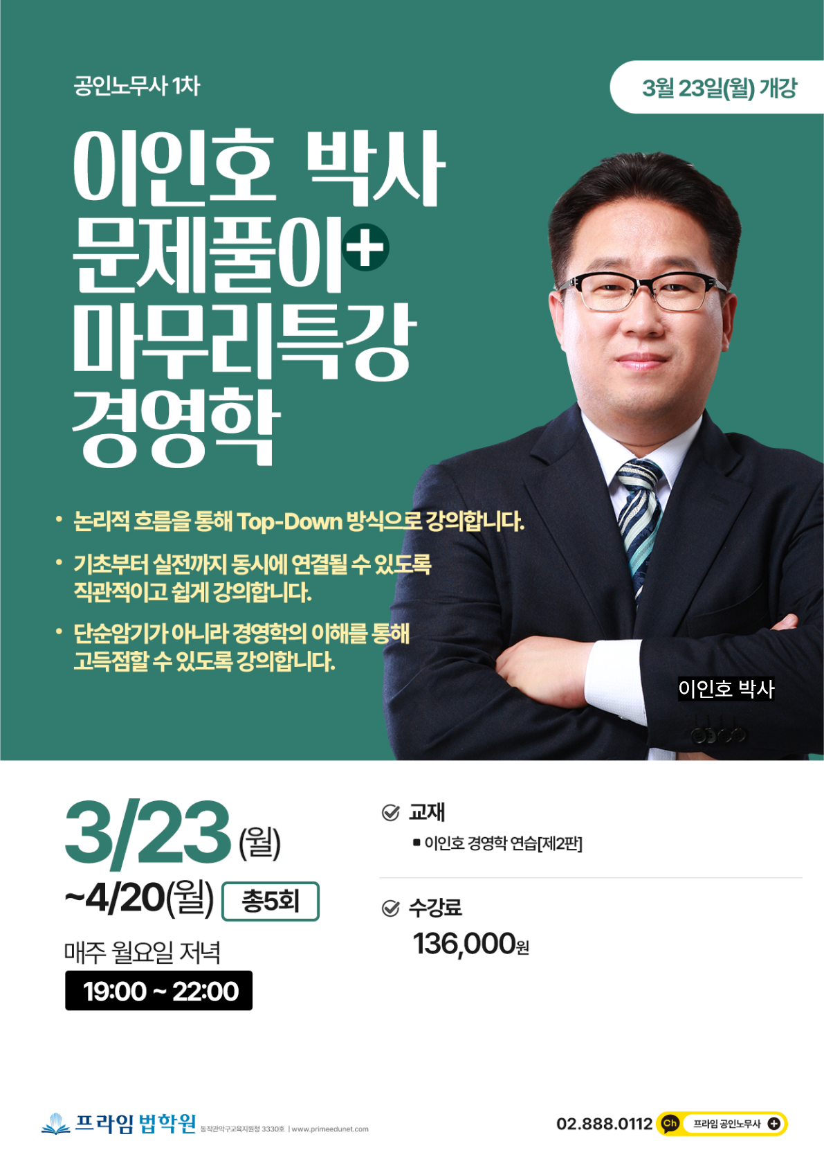 다음글 [문제풀이+마무리특강] 2026 이규명 경영학 노무1차 -4월 4일 (토) 개강