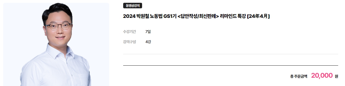 | [동영상개강]2024 박원철 노동법 GS1기 <답안작성/최신판례> 리마인드 특강 [24年4月]
