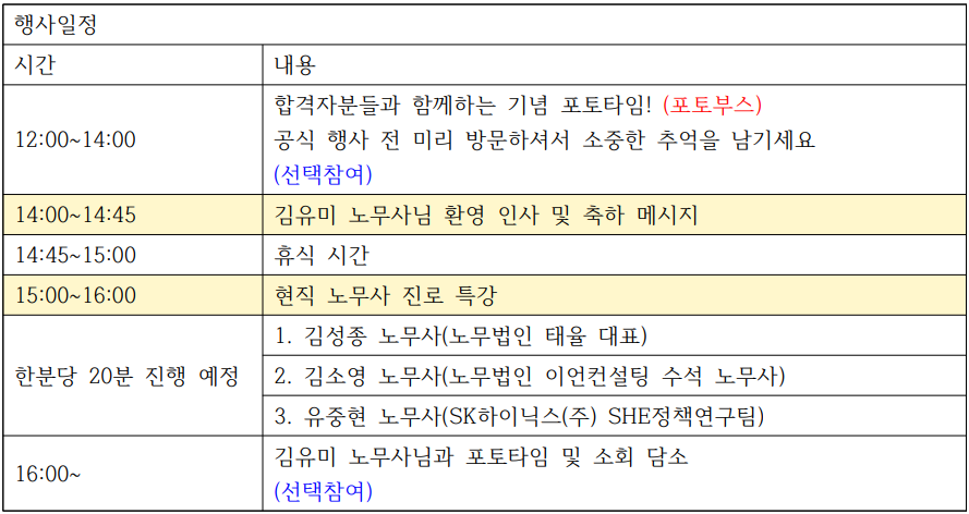 | 김유미 노무사 합격자 Tea-time 공식일정