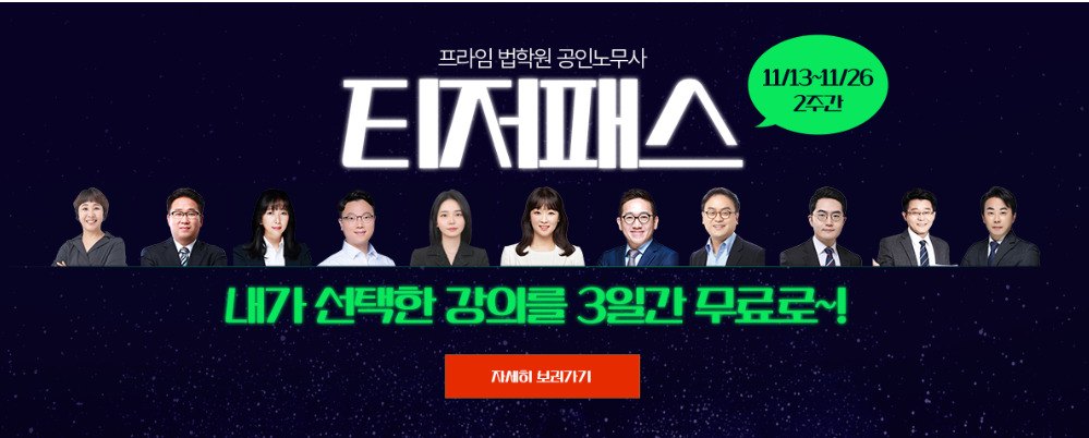 | [이벤트] <티저패스> 3일간 무료로 프라임 공인노무사의 찐 강의를 맛볼수 있는 기회!!
