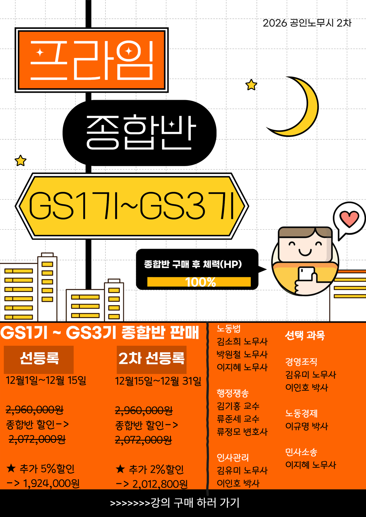 2026년 공인노무사 2차시험 대비를 위한 GS1~3기 종합반을 모집합니다.