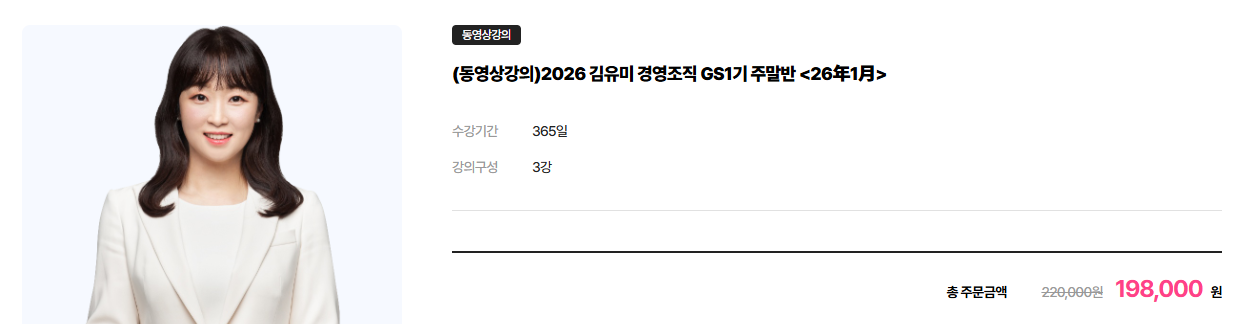 | [동영상오픈] (동영상강의)2026 김유미 경영조직 GS1기 주말반 <26年1月>