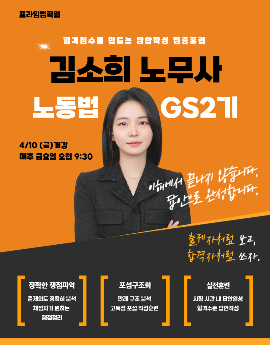 | [2차-개강] 2026 김소희 노동법 GS2기 금요반 - 4/10(금) 오전 9시30분