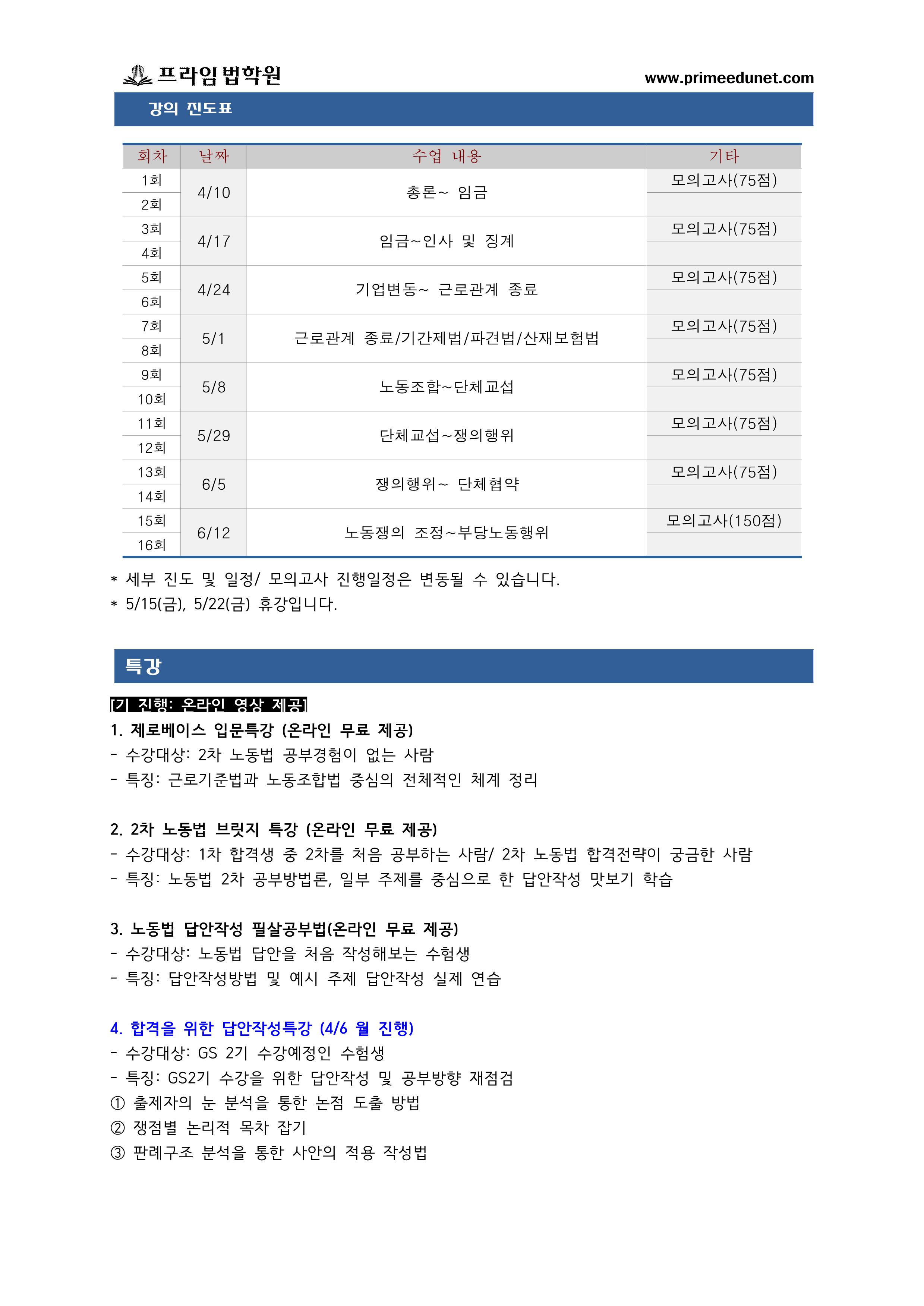 다음글 2026_박원철_노동법 GS2기_강의계획서 / 일요일
