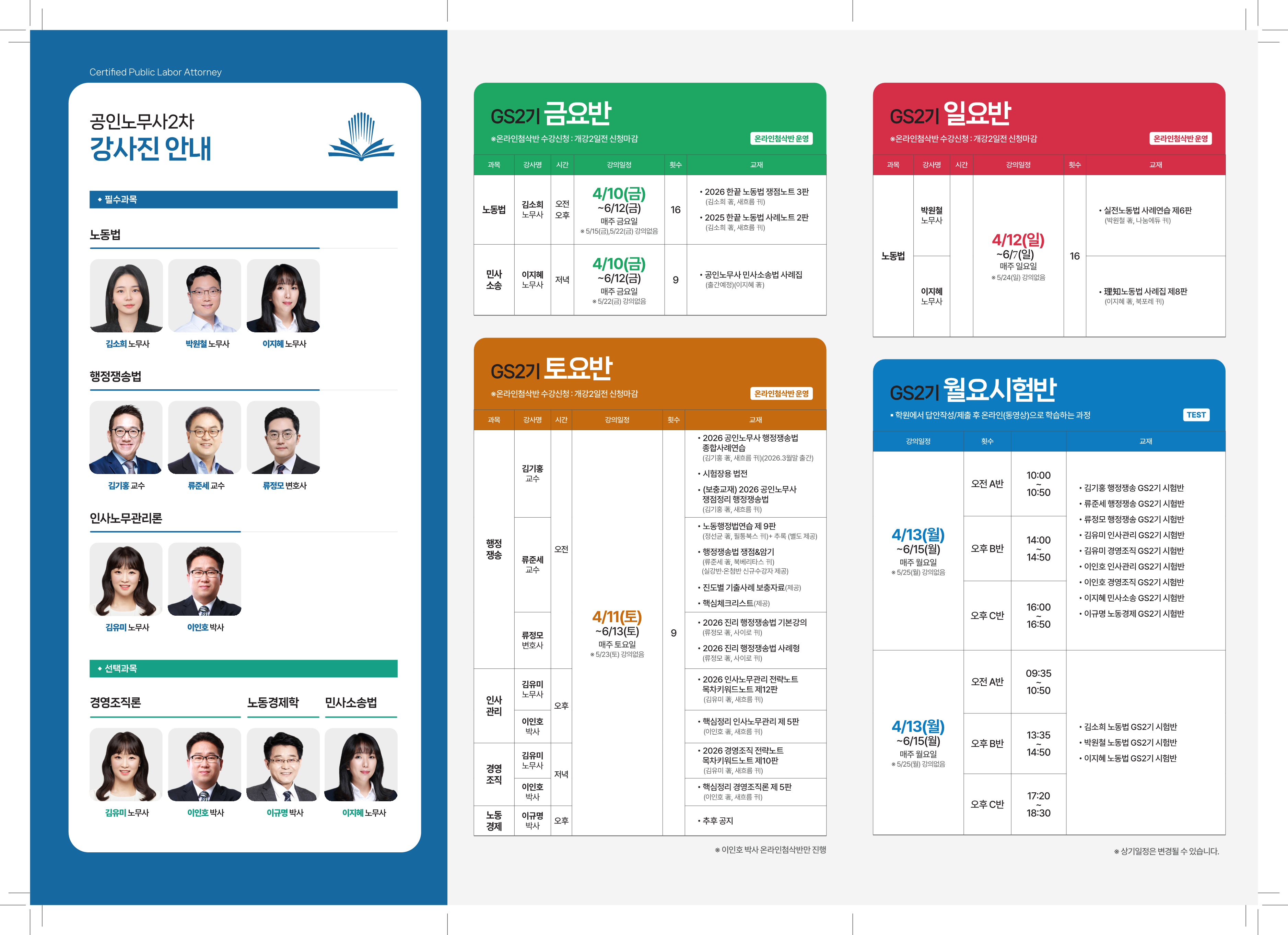 | 2026 공인노무사 2차 GS2기 시간표 및 팜플릿