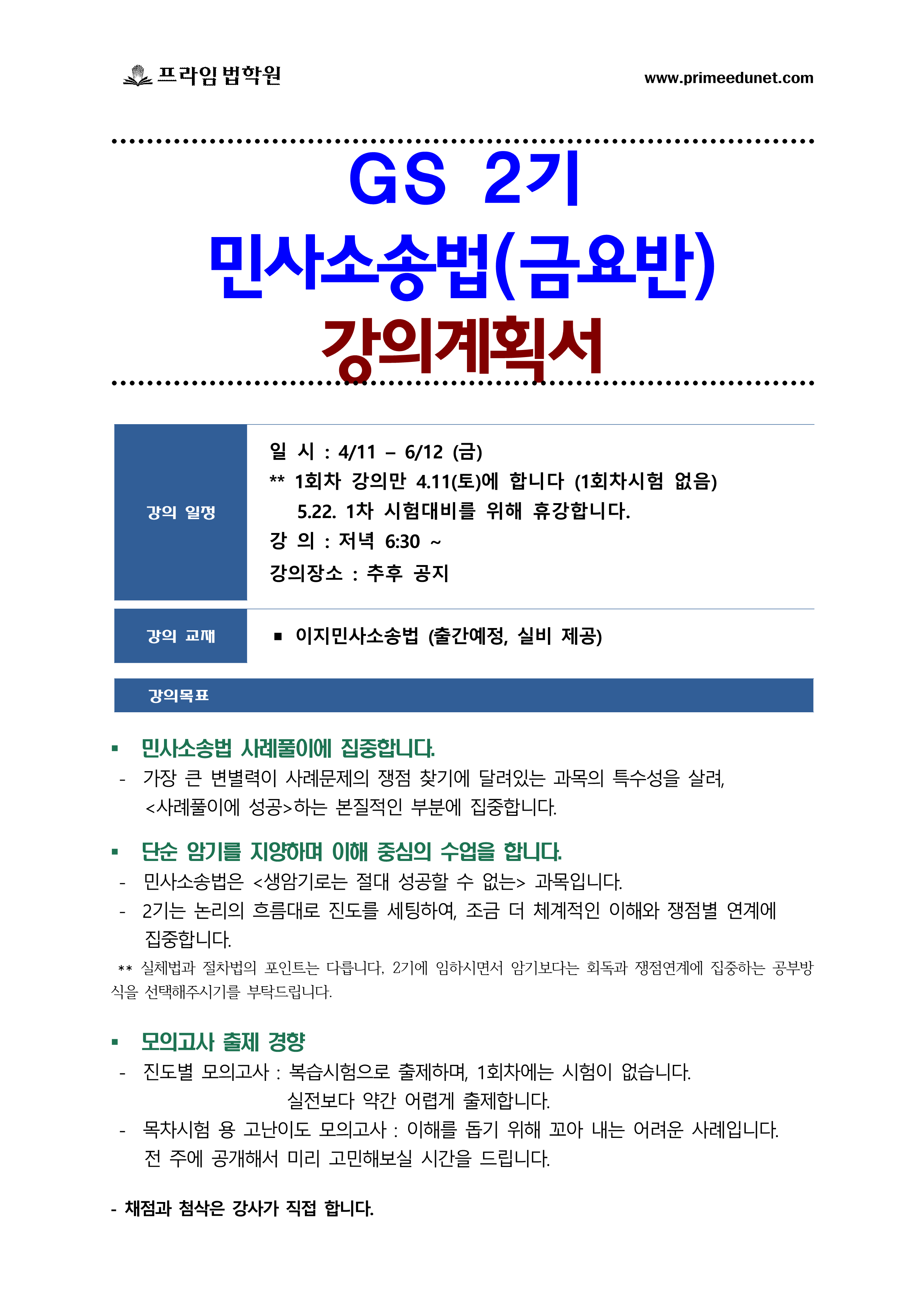 | 2026_이지혜_민사소송법 GS2기_강의계획서 / 금요일