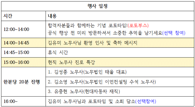 | 김유미 노무사 합격자 Tea-time 공식일정