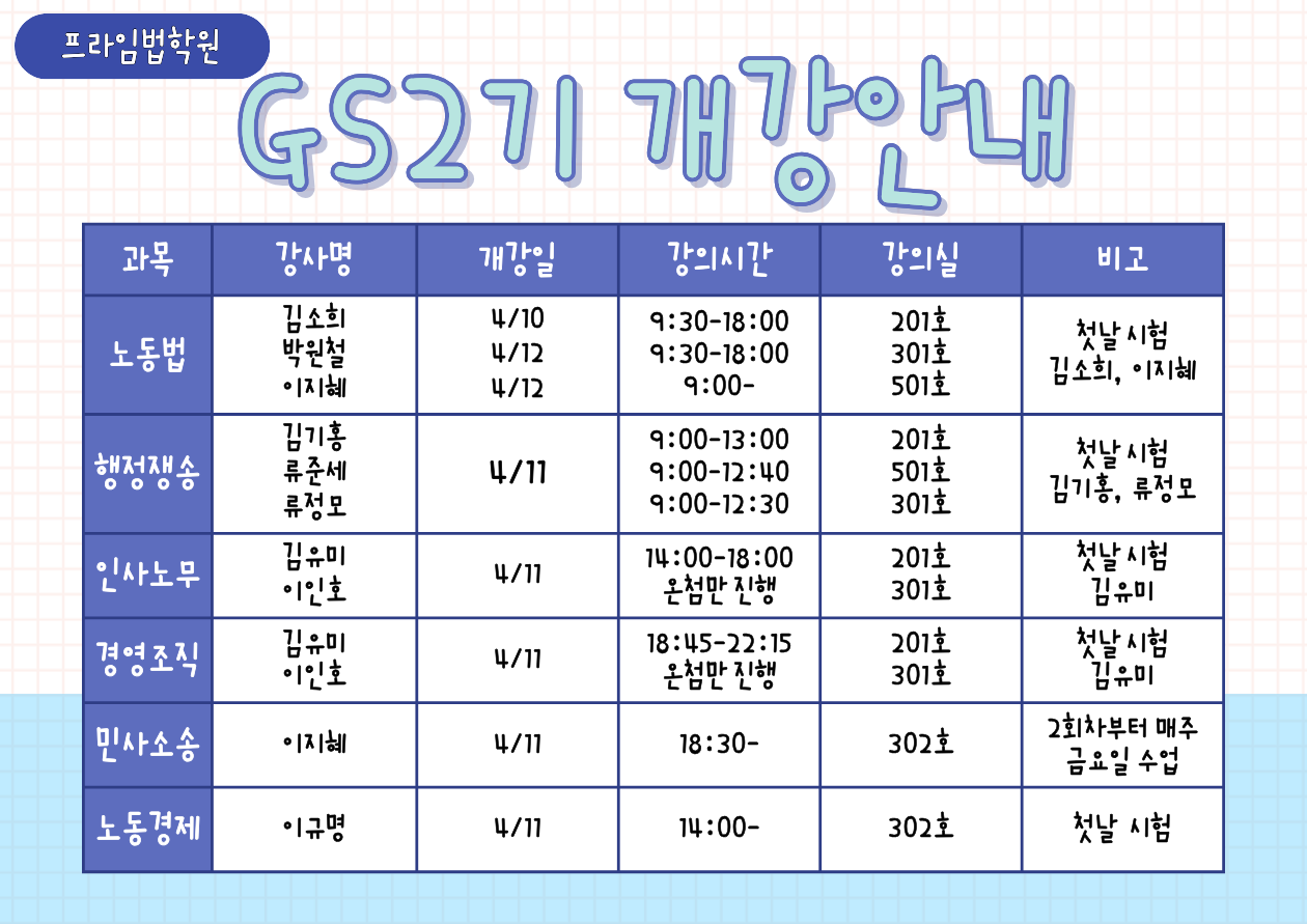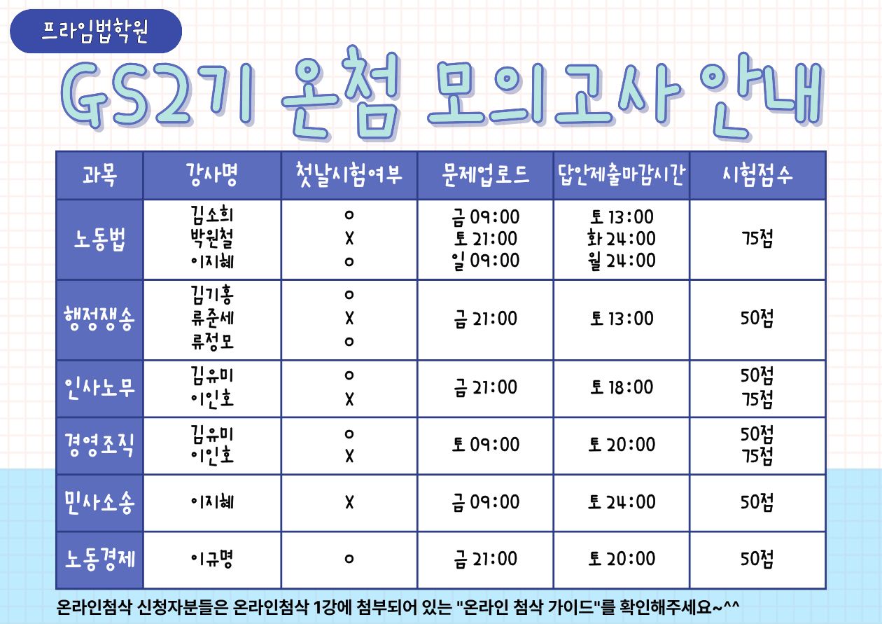 | GS2기 개강 안내 및 온첨반 모의고사 안내
