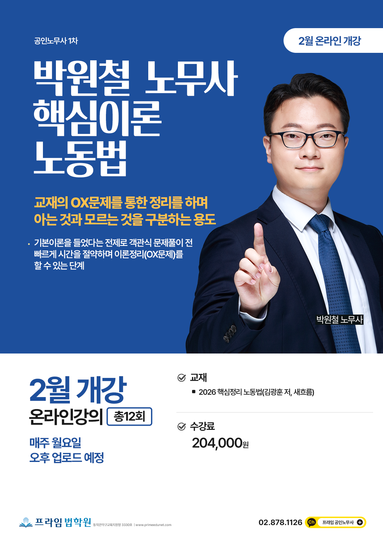 (동영상강의) 2026 박원철 노동법 노무1차 핵심이론 <26年2月>