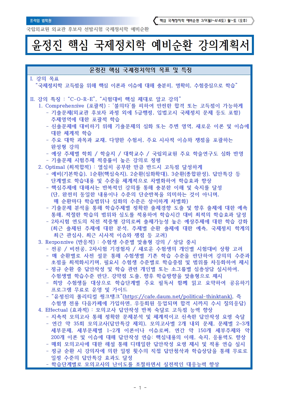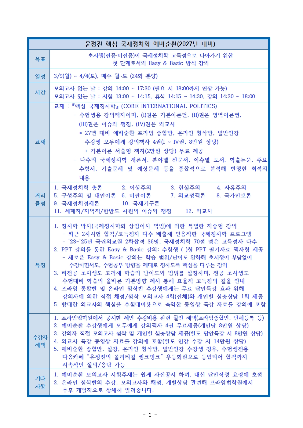 다음글 2026대비 윤정진 국제정치학 3순환_강의계획서