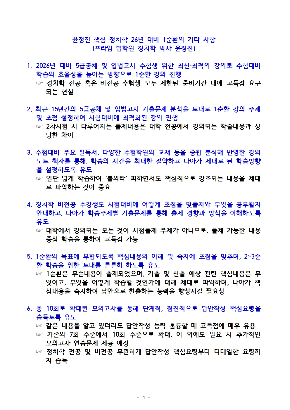 2026대비 윤정진 정치학 1순환_강의계획서 - 실강 9/26(금) 개강