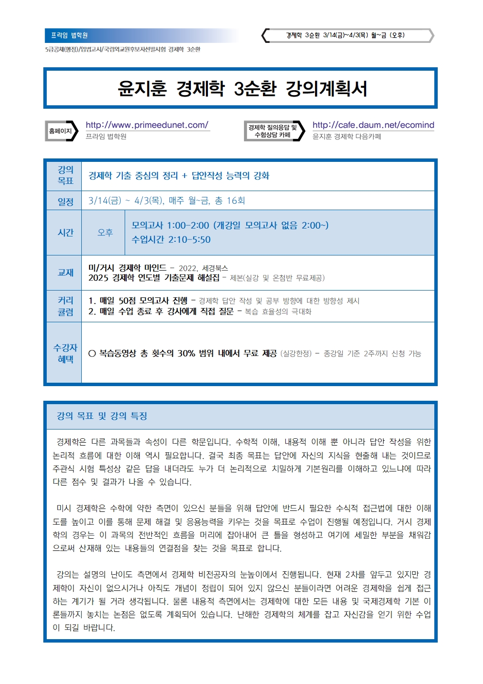 2025 대비 윤지훈 경제학 3순환 - 3/15(토) 개강