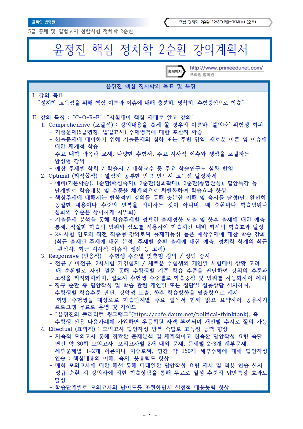 <5급 공채 2차> 2026 대비 윤정진 정치학 2순환_12/30(화) 개강