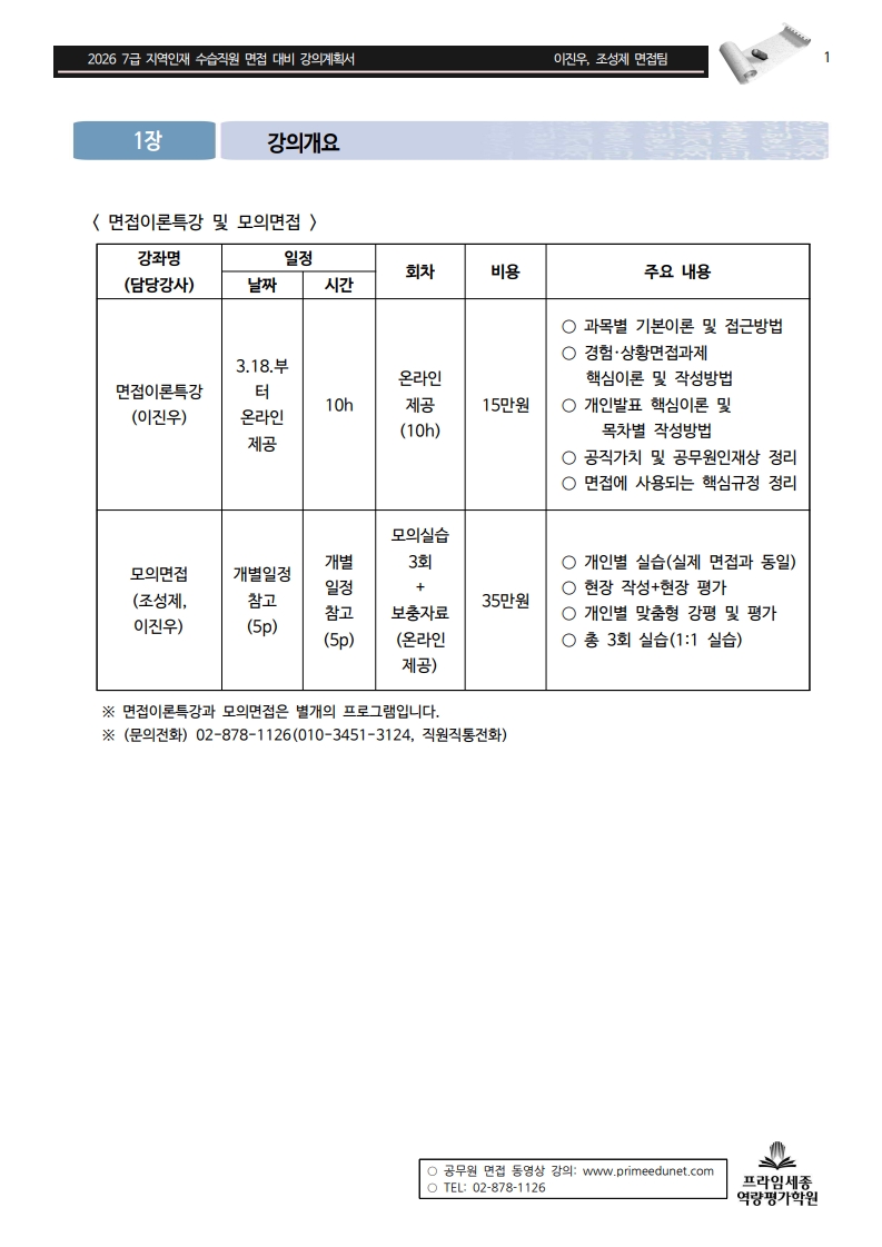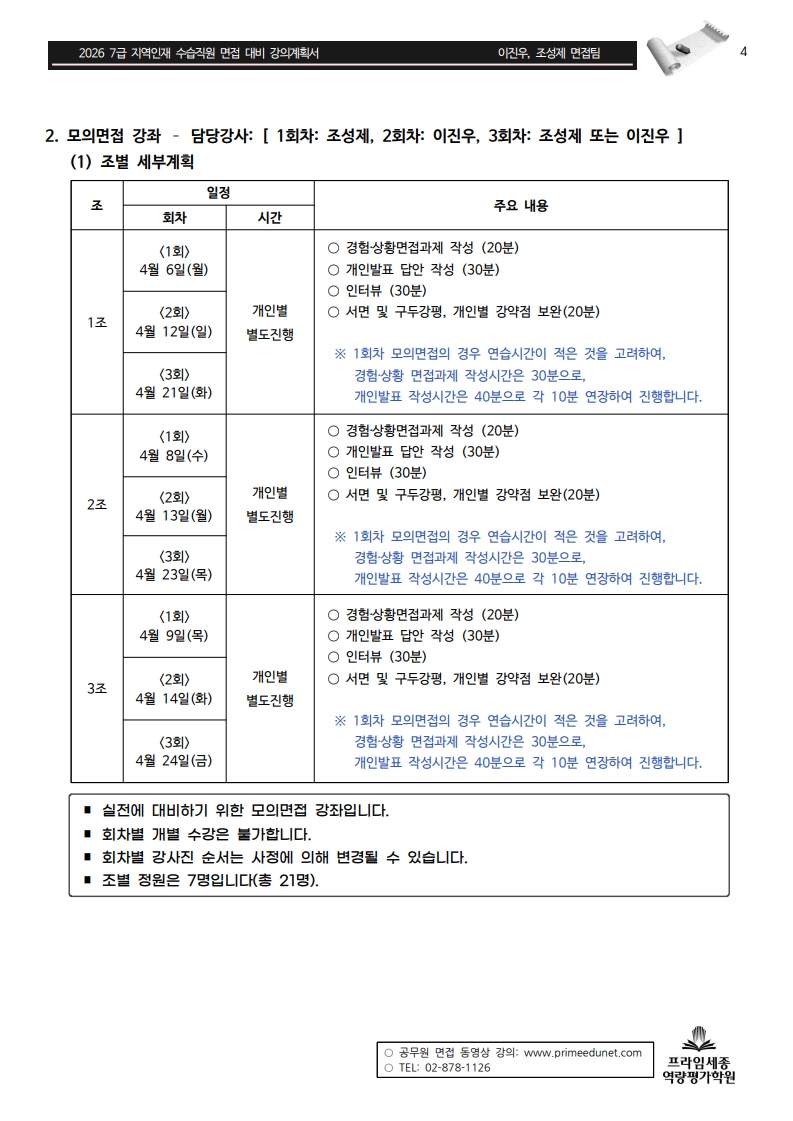 | 2026년 7급 지역인재 면접 대비_강의계획서