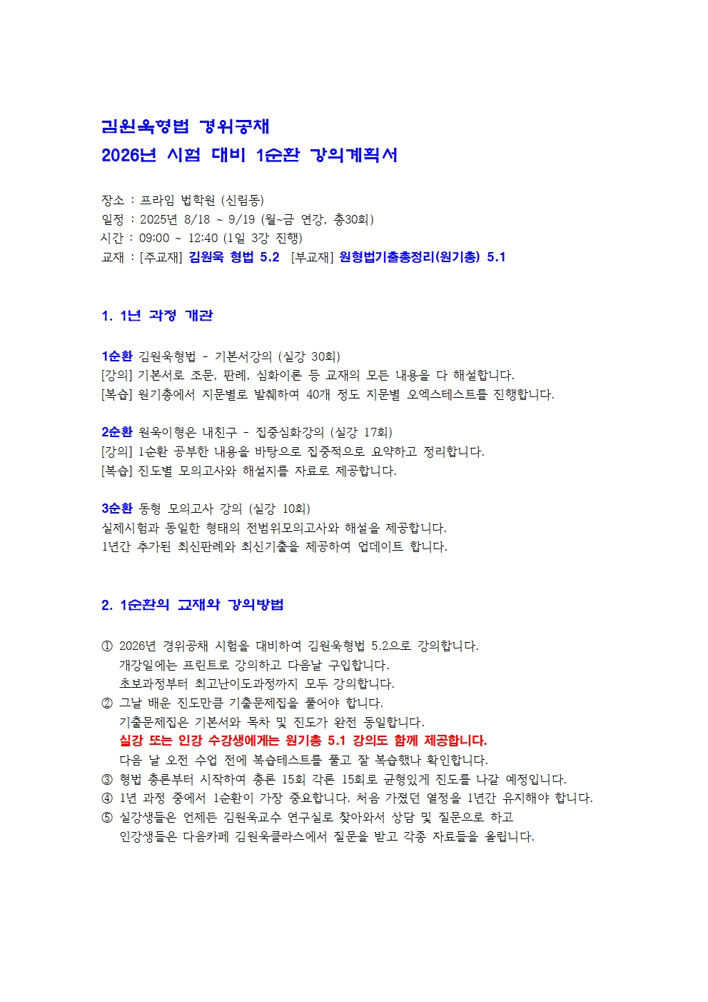 프라임 법학원 해양간부 / 경찰간부 / 승진 형법 전임
