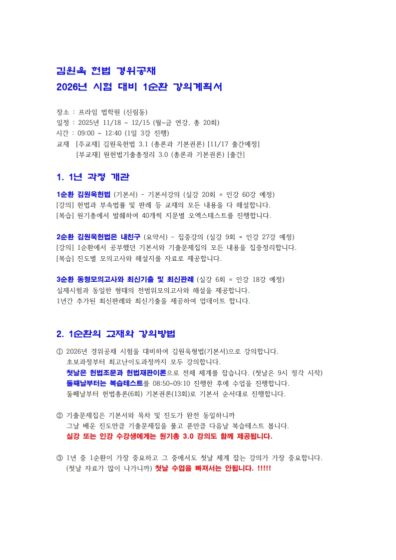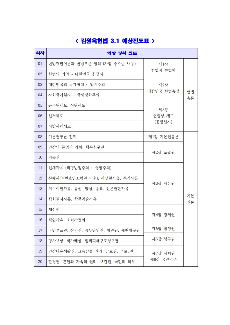 76기 대비 김원욱 헌법 1순환 강의계획서