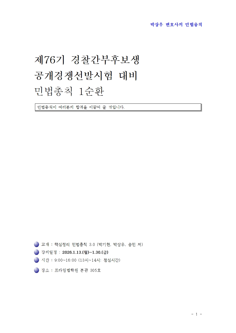 | 76기 대비 박상우 민법총칙 1순환 강의계획서