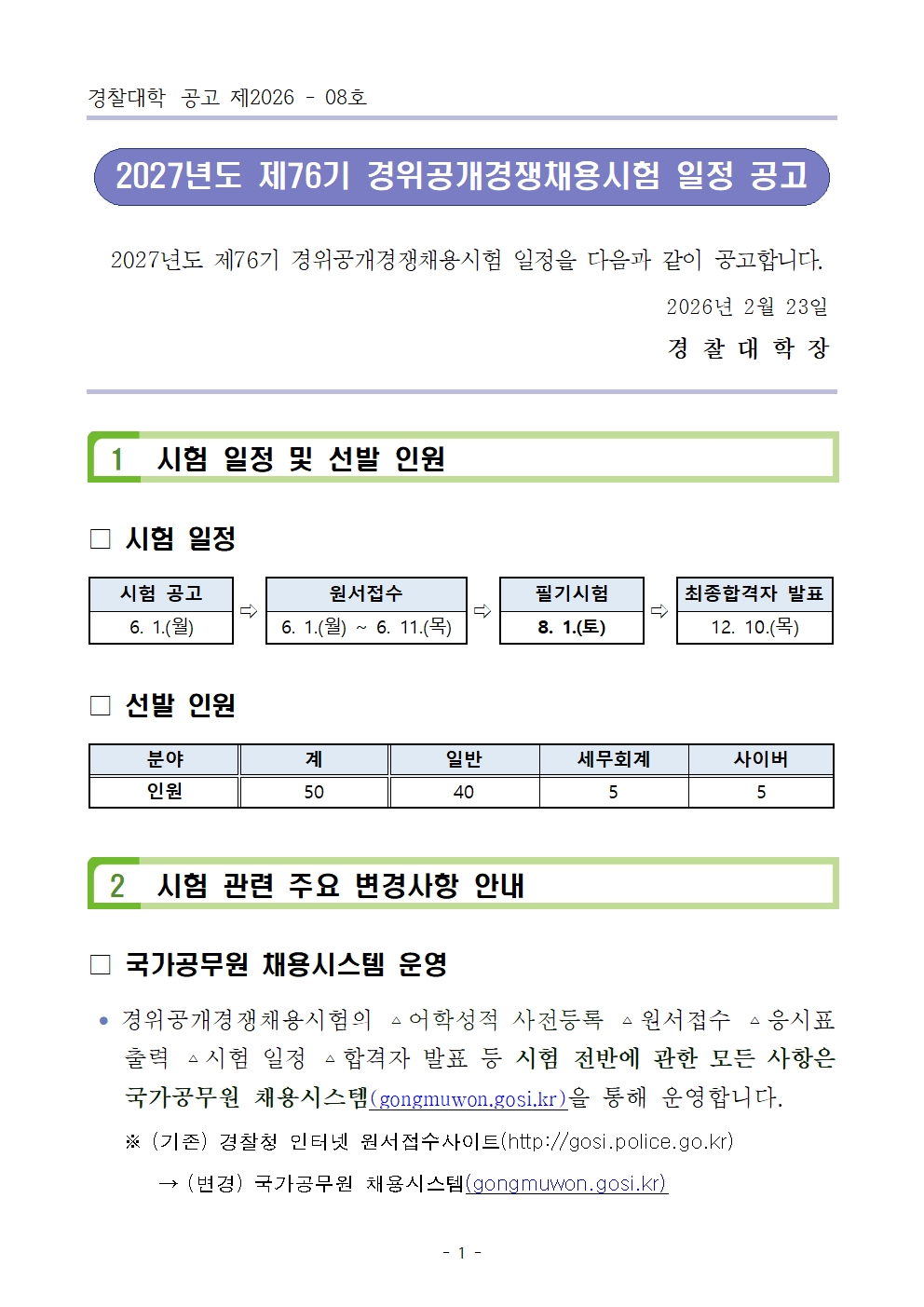 | 2027년도 제76기 경위공개경쟁채용시험 일정 공고