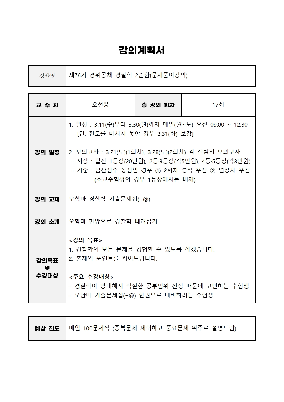 | 76기 대비 오현웅 경찰학 2순환 강의계획서