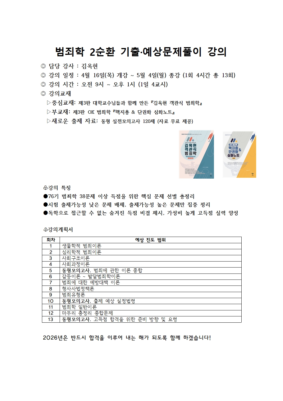 | 76기 대비 김옥현 범죄학 2순환 강의계획서