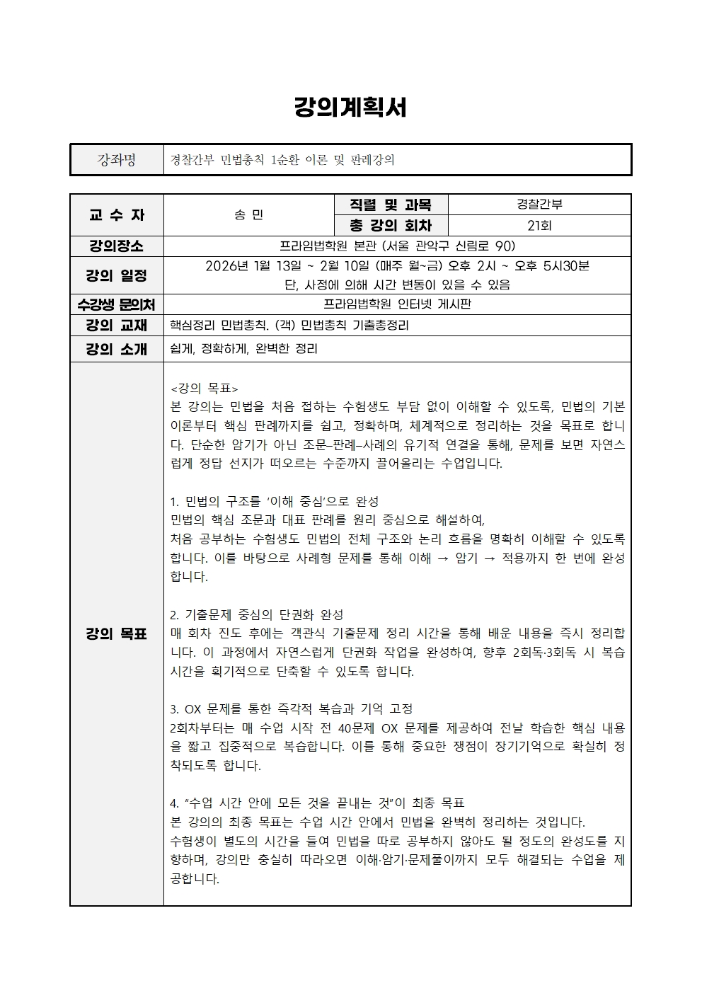 現) 프라임 경찰간부, 공인노무사, 감정평가사 민법 전임