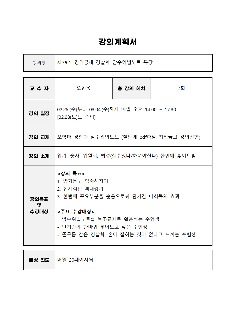오현웅 경찰학 암수위법노트 특강