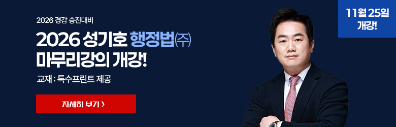 23년1월 경정시험 합격하였습니다. 2018경감시험을 위해 인터넷으로만 수강하며 보았던 성기호 교수님을 실제로 보니 신기하기도 했고, 눈 앞에서 다그쳐주시는 강의를 듣는 것이 참 좋았습니다. 쉬는시간에 엘레베이터에서 초시냐고 물어보시며 말을 걸어주셨는데 그렇다고 답변하며 개인적으로 마음을 더 다잡는 좋은 시간이었습니다. 다른 교재로 시험 준비하시는 분들도 하루 들으며 자신의 위치를 점검하기에 매우 좋은 시간이니 강추합니다.