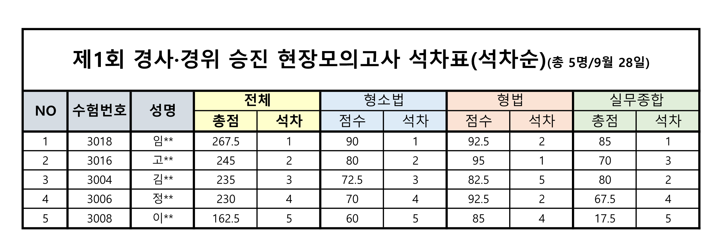 [공지] 경사·경위 승진 제1회 현장모의고사 전체 성적 공지 (25.9.28 일요일 시행)