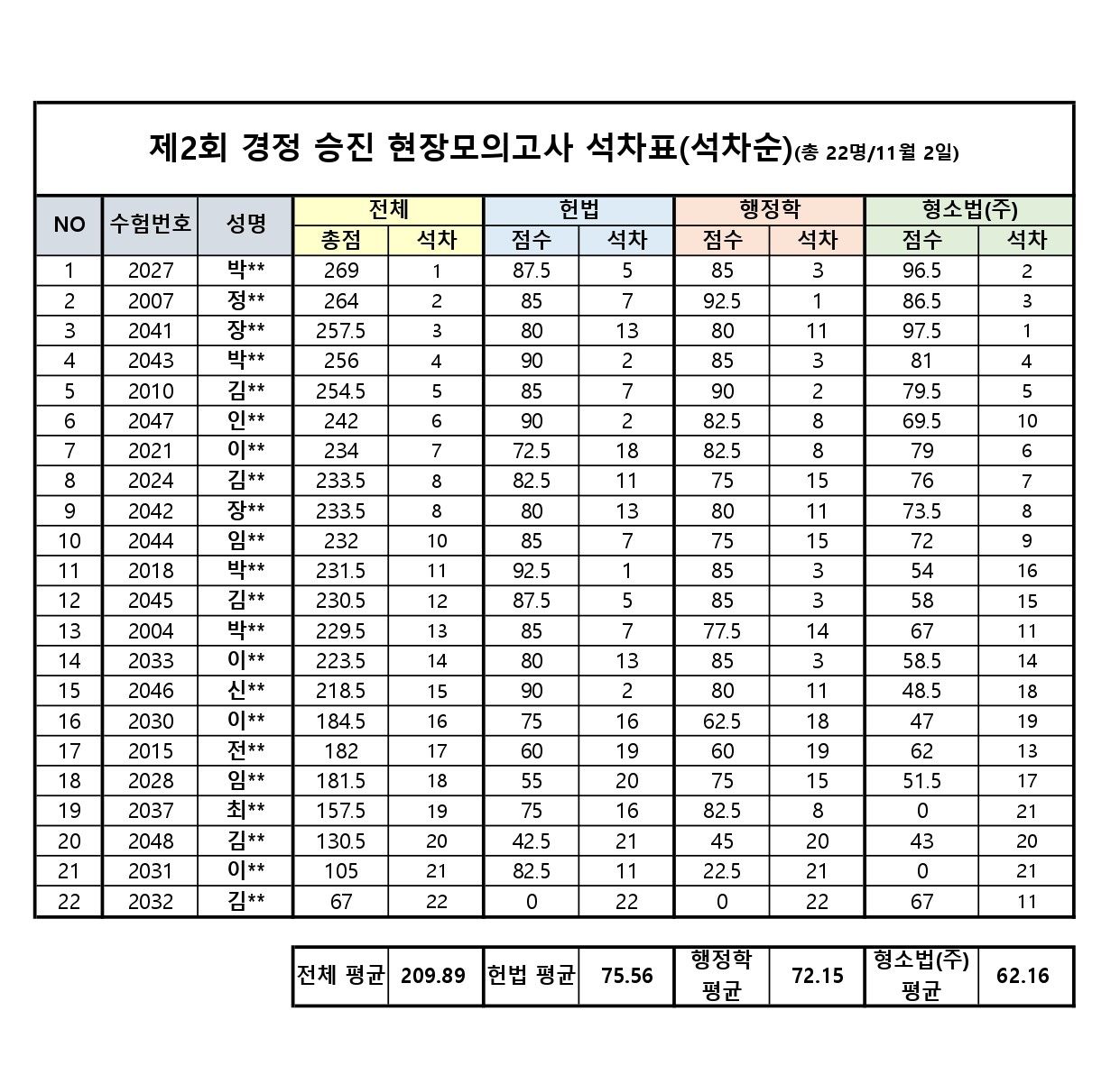 | [공지] 경정 승진 제2회 현장모의고사 전체 성적 공지 (25.11.2 일요일 시행)