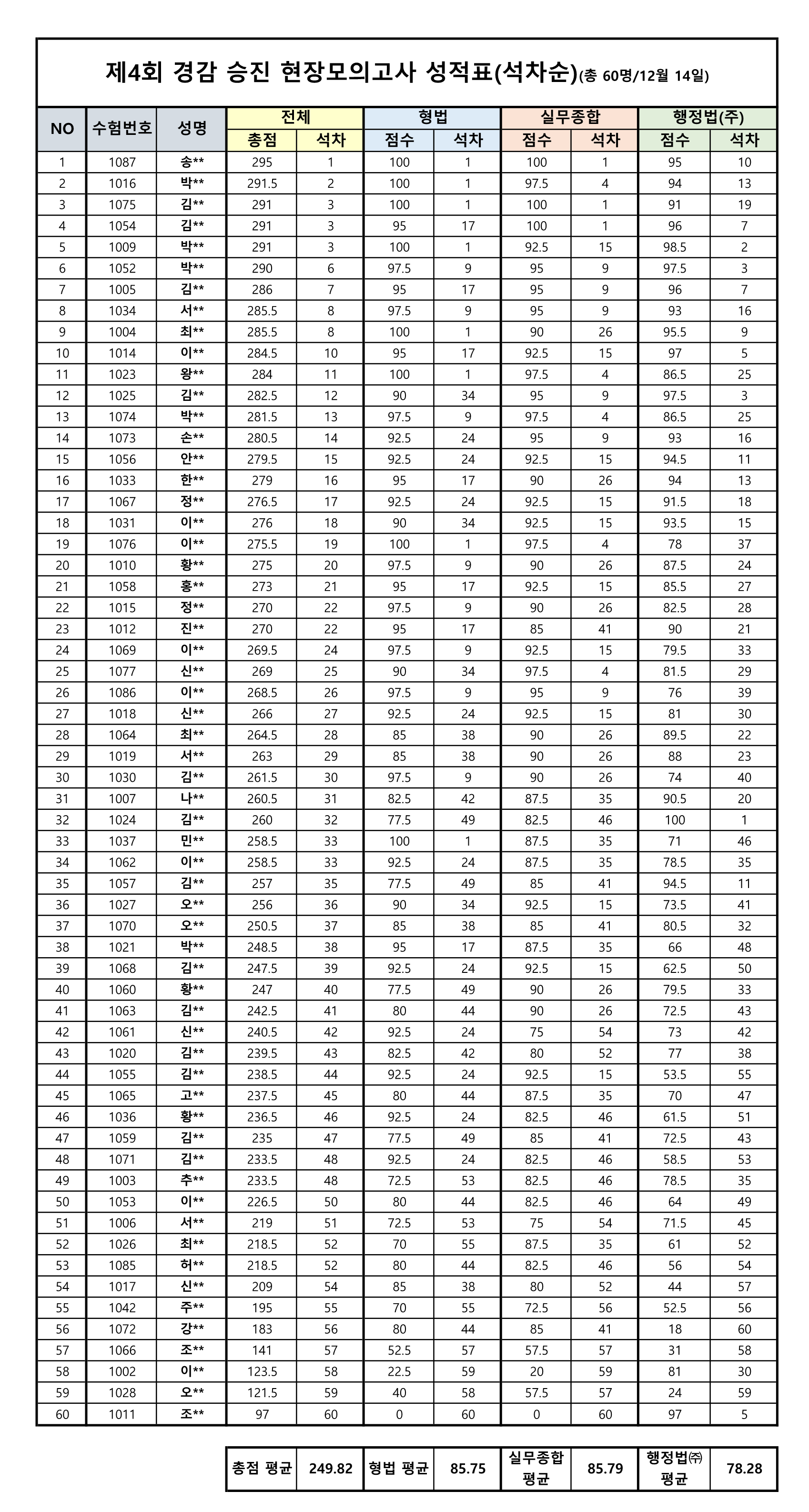 | [공지] 경감승진 제4회 현장모의고사 전체 성적 공지 (25.12.14 일요일 시행)