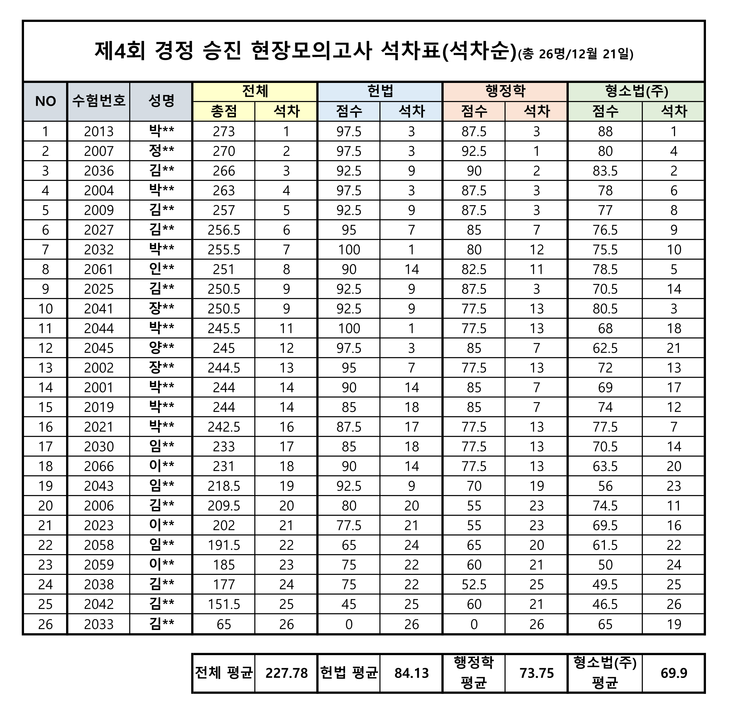 | [공지] 경정 승진 4회 현장모의고사 전체 성적 공지 (25.12.24 일요일 시행)