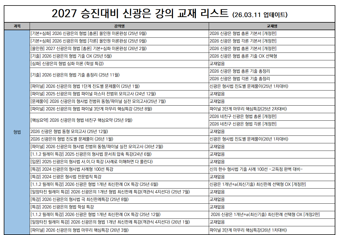 다음글 [공지] 2027 승진대비 프라임 강의 및 교재 리스트 (26.03.11)