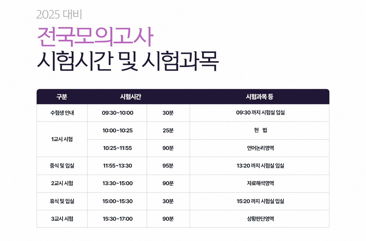 | [2025 대비 전국모의고사] 시간표 및 성적 확인 방법