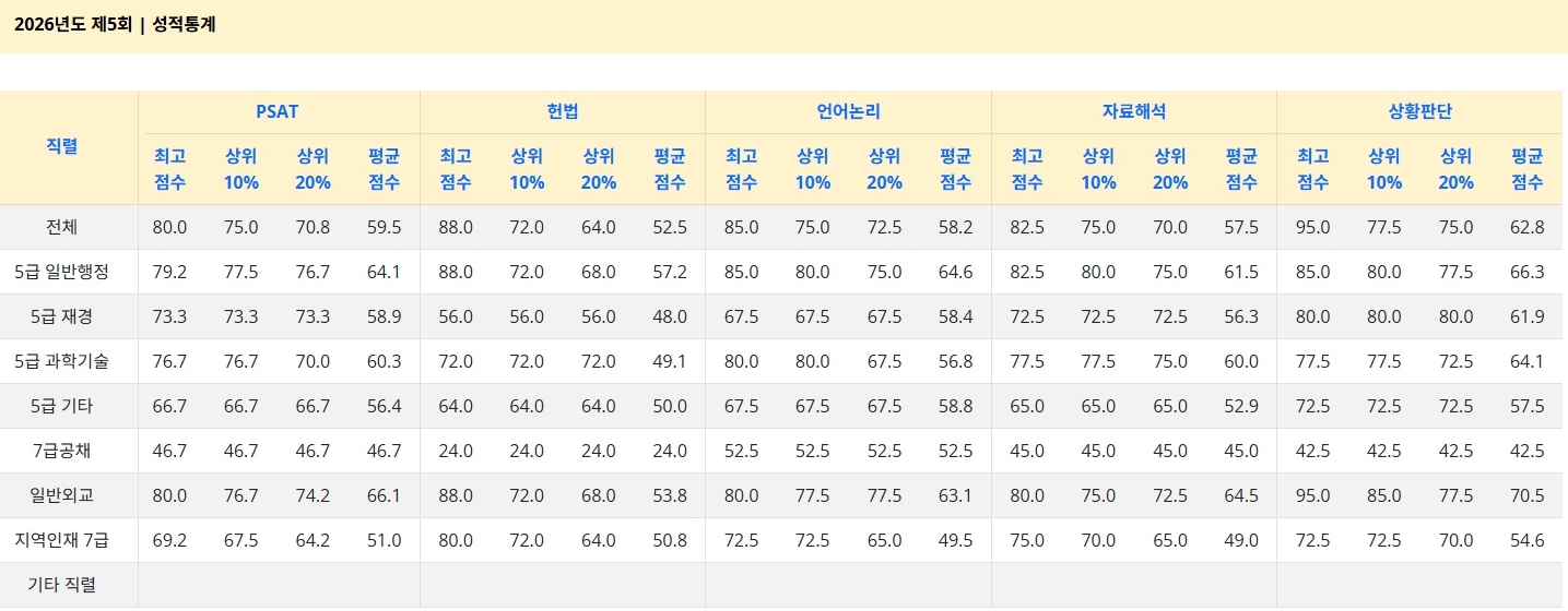 | [2026 대비 PSAT 전국모의고사] 제5회 성적통계 요약 및 정오 공지