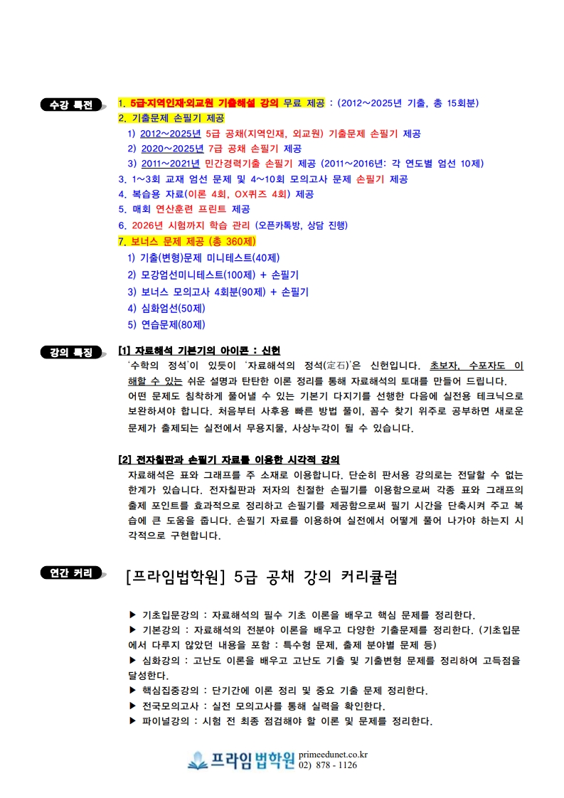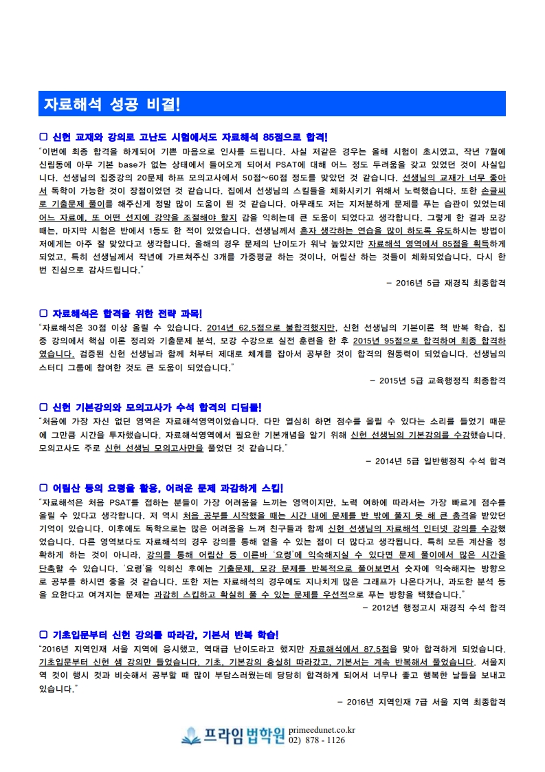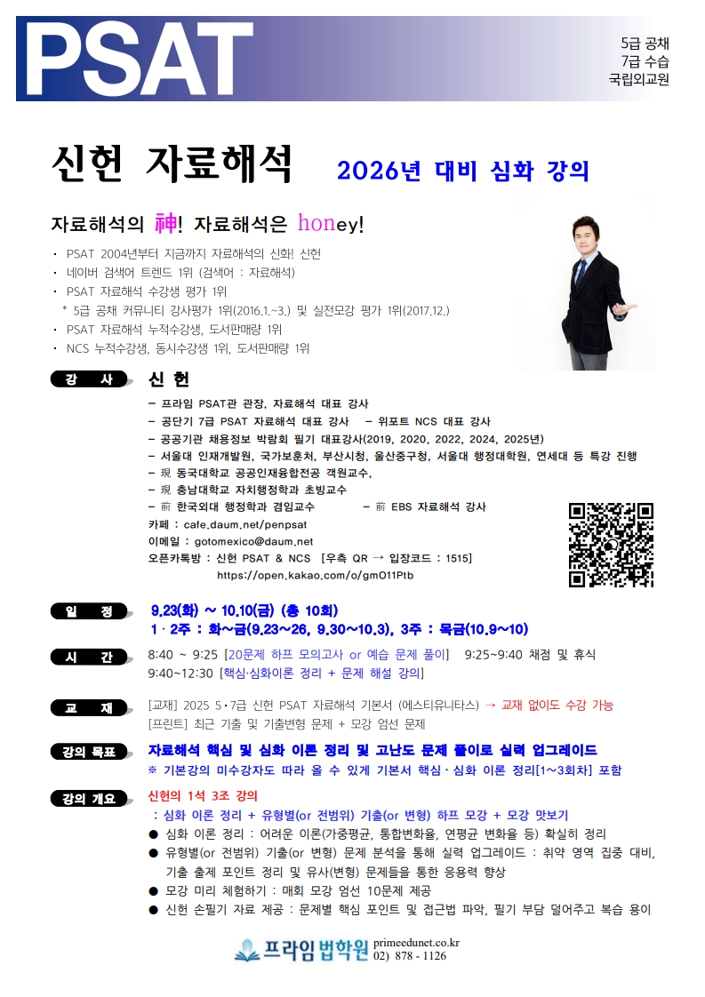 現) 프라임법학원 PSAT 자료해석 전임강사(5급 공채, 지역인재, 민간경력)
